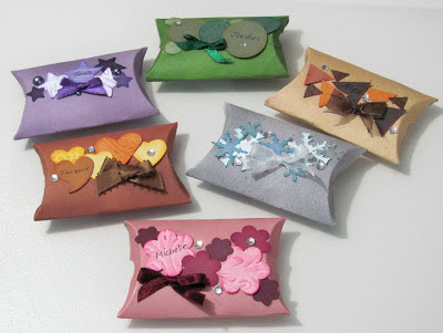 First up, little pillow boxes I made for Christmas stocking stuffer wrappings. These would also work really well for Valentine's. Stuff them with Hershey's kisses, candy hearts, cinnamon candy etc. for a cute treate.